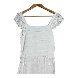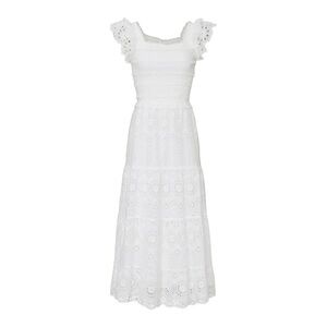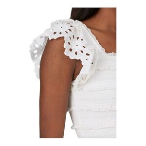 In super-lightweight cotton styled with eyelet embroidery, flirty ruffles, and a comfortable smocked bodice, this A-line Sea New York dress is all you need to get excited about the coming warm weather.