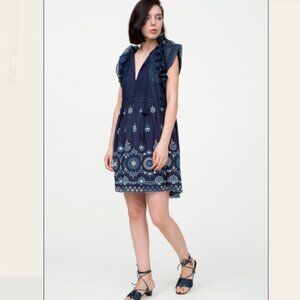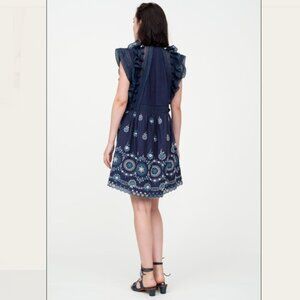 Sea New York Dress Womens 6 Blue Sofie Tunic Ruffle Pleated Embroidered Floral
