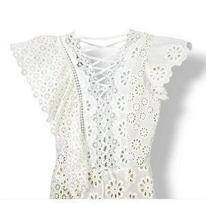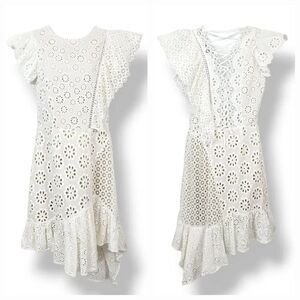Sea New York Embroidered Eyelet Asymmetrical Lace Up Edie Dress in White Size 10