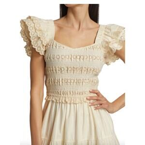 Sea New York Everleigh Eyelet Smocked Midi Cream Tiered Dress Large