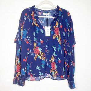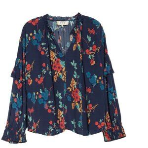 Ruffles frill the sleeves and collar of a floral-print blouse that perfectly blends Sea's bohemian spirit and sophisticated sensibility. Style Name:Sea Mari Floral Print Ruffle Trim Top.