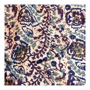 Purple batik print bikini bottom features a high waisted silhouette and center back ruched detailing.