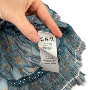 Sea New York Khloe Blue Floral Pom Pom Ruffled Flutter Sleeve Blouse Womens 2