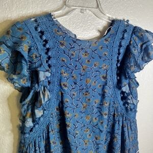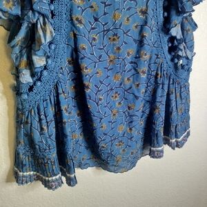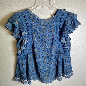 Sea New York Khloe Printed Pom Pom Blouse - Floral Ruffle Pleated Top sz 4