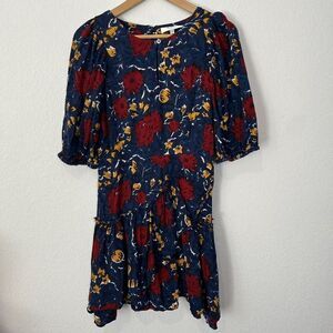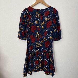 SEA New York Navy Blue Floral Short Sleeve Ruffle Mini Dress Women's Size 2