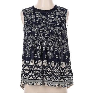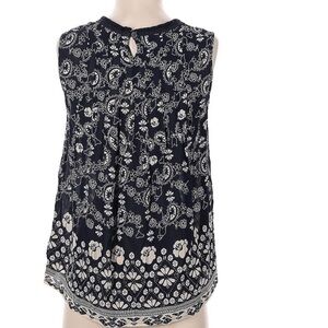 Sea New York Navy Blue White Cream Floral Keyhole Button Back Tank Top Size 4