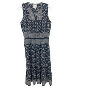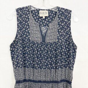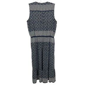 Sea New York Navy Blue & White Ikat Printed Silk Midi Dress - Women's Size 8