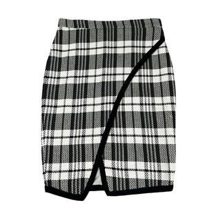 Sea New York black and white plaid tweed faux wrap pencil skirt. Women's size 10.