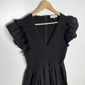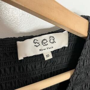Sea New York Phoebe Mini Dress Womens 10 Black Smocked Tiered Pockets Cotton