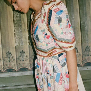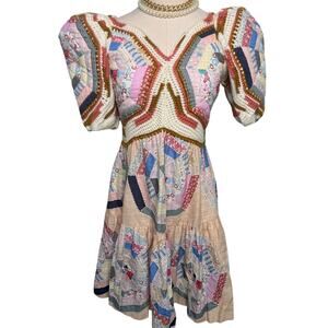 Sea New York Quin Mini Dress patchwork knit quilted BoHo size extra small XS