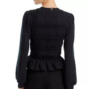 Sea New York Rita Smocked Navy Blue Jersey Long Sleeve Smocked Top Large