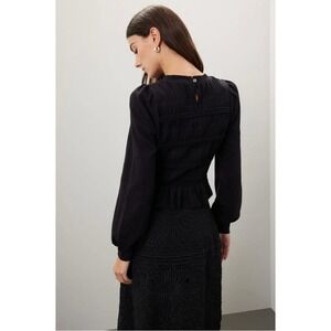 Keywords: Sea New York, Smocked Top, Eyelet Top, Ruffle Peplum, Long Sleeve Top, Black Top, Women's Top, Crew Neck, Puff Sleeve, Boho, Bohemian, Contemporary, Chic