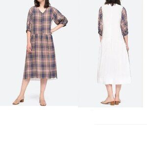 Sea New York Rooney Dress Womens Size 2 Blue Cream Plaid Short Sleeve Midi Relaxed Fit. Colorblock. Plaid Front, Solid White Back. V-neck. Back Zip Closure. Shell: 100% Viscose. Combo: 100% Cotton. Dry Clean only