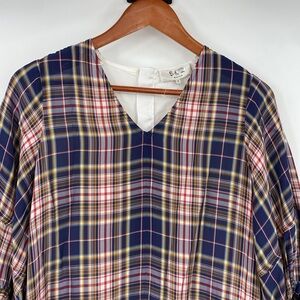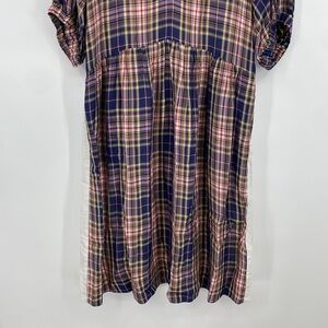 Sea New York Rooney Dress Womens Size 2 Blue Cream Plaid Short Sleeve Midi Relax