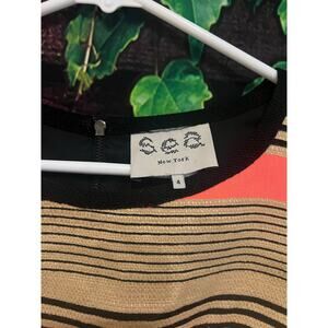 Sea New York Sleeveless Linen Cotton Blend Midi Sheath Dress Black Striped Sz 4