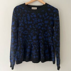 Sea New York Sweater Leopard Print Alpaca Peplum Sleeves Sweater Size Small