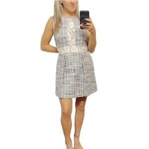 Sea New York Tweed Fit & Flare Dress w/White Floral Lace Cut Outs & Pockets (4)