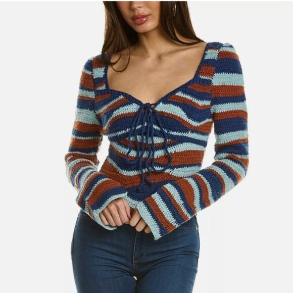 Sea New York | Wavey Striped Crochet Cropped Sweater Size Extra Large
