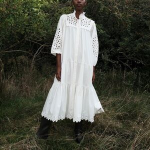 Sea New York White Cotton Eyelet Boho Midi Dress