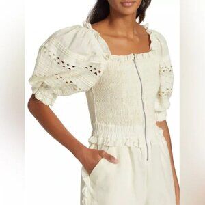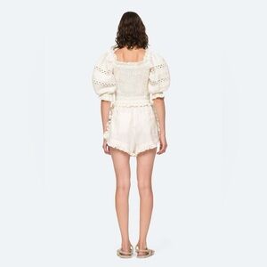 Gorgeous "Willa Smocking" romper in a light cream color ("White"). Please note that the color is called "White", but it is definitely a light cream shade.
