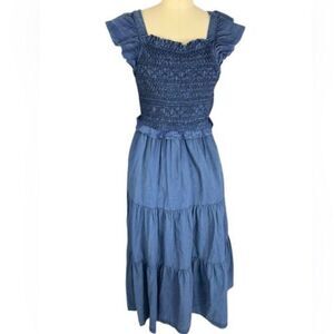 Sea New York Simona Smocked Tiered Open Back Tiered Midi Dress