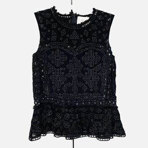Sea New York Eyelet and Lace Sleeveless Top Black Peplum Style Women’s Size 0