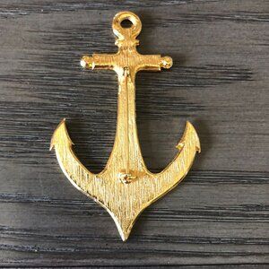 Sea Sailboat Anchor Brooch Pin Gold Tone Ivory Enamel Nautical Costal Cruise Wear
