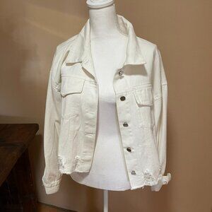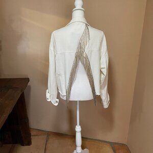 NWT- Cream colored Jean Jacket with rhinestone Fringe.
