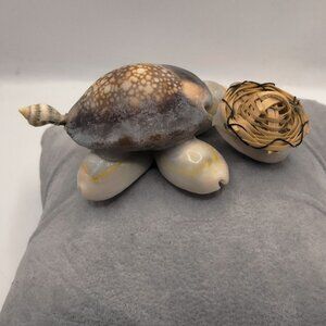 Charming sea shell turtle figurine for display or collection. Unique shell design with woven head accents.