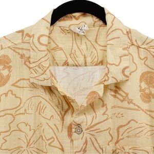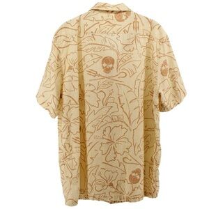 Sea Shepherd Butter Yellow Hawaiian Skull Camp Shirt Vacation Beach Button up M