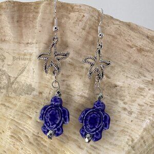This is a gorgeous pair of handmade sea turtle earrings. 925 sterling silver hooks. Stone turtle beads.