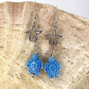 This is a gorgeous pair of handmade sea turtle earrings. 925 sterling silver hooks. Stone turtle beads.