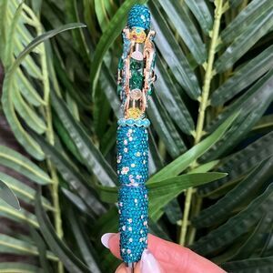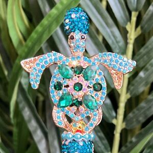 Sea Turtle Hand-Made Custom Beaded Pen with Large Fancy Double-Sided Sea Turtle Rhinestone Embellishment. Stunning!!! Absolutely perfect for then Sealife Fan in your life!