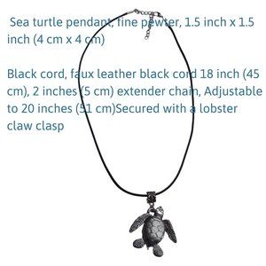 *Sea turtle pendant, fine pewter, 1.5 inch x 1.5 inch (4 cm x 4 cm)