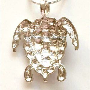 Sea Turtle Necklace Silver Plated BIG Pendant Sea Life Nautical Island Beach
