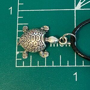 Sea Turtle Necklace Silver Tone Nautical Island Beach Black Cord 17-18" Surfer
