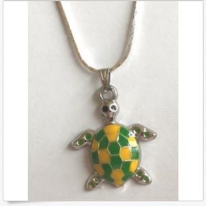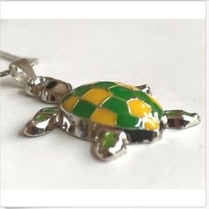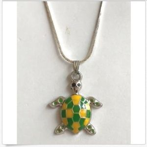 Sea Turtle Necklace Yellow Green Sea Life Island Nautical Silver Plated Pendant