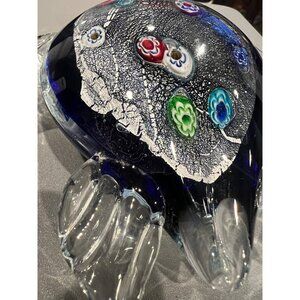 Sea Turtle Paperweight Cobalt Blue Glass With Multi Colored Designs Unmarked