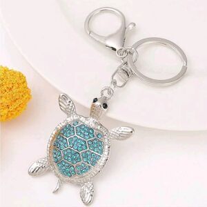New! Sea turtle rhinestone charm keychain. Beautiful sea turtle with blue rhinestones on the shell. The charm includes both a sturdy clasp and a key ring so it can be used in multiple ways. Use it to hold your keys or clip it on your backpack, bag or purse. Bundle to get a discount.