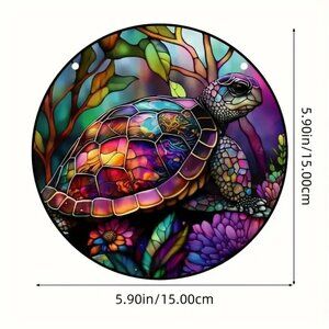 Sea Turtle Suncatcher 6" Metal Chain Beach Ocean Tropical Colorful Reef Purple