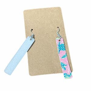 Sea Turtles Bar Dangle Drop Earrings Pink Teal
