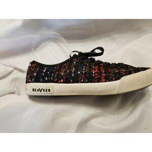 Sea Vees Lace Up Low Top Sequin Fashion Sneakers Tweed Multi-color Womens Sz 6