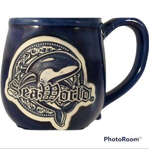PreLoved💕 in excellent Condition Sea World Shamu Tall Mug Stein Cobalt Blue Ceramic Sea World Emblem 6” ReAdy to Ship!