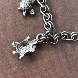 This anklet is perfect for your next trip to the beach. Silver toned sea turtle anklet