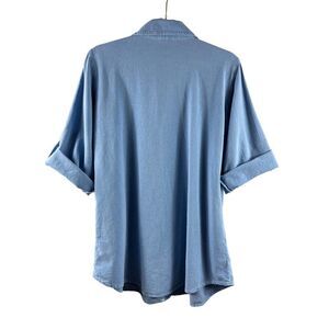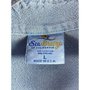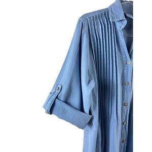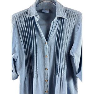 Sea Breeze of California Pleated Button Up Gauze Roll-Tab Sleeve Tunic Top Large