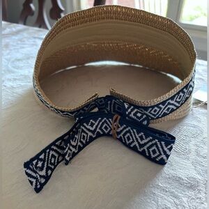 Stay stylish and protected with the tan visor. Featuring a chic blue pattern, this accessory is perfect for sunny days.