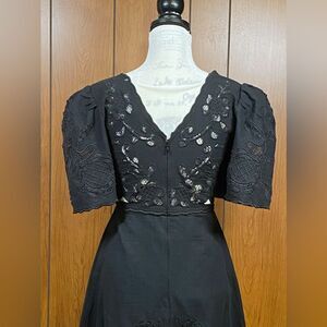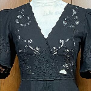 Sea's Julian dress is crafted of cotton and flaunts a classic fit-and-flare silhouette. Lace detailing and short puff sleeves complete this V-neck style.