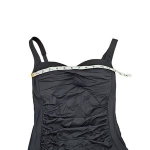 This is a brand new with tags SeaLevel swimsuit. It is a one-piece swimsuit in a black color. It has a ruched design on the front and adjustable straps. The swimsuit is made from high-quality materials and is sure to make you look and feel your best.