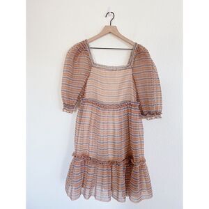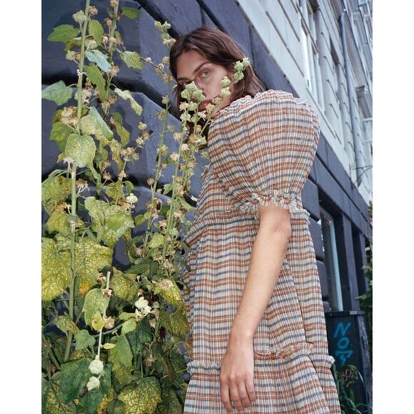 A high-volume version of a prairie-chic piece. This Sea dress pretties up a classic plaid pattern with airy chiffon, puff sleeves, and plenty of ruffles.