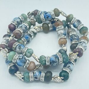 Sea Turtle India agate K2 beaded stretch bracelet ONE NEW crystal reiki yoga meditation Approximately 7.5” ONE stretch bracelet Brand new, handcrafted by me, no tags Yoga, meditation, reiki, healing crystals stones India agate K2 jasper Silver tone rhinestone spacers Silver tone sea turtle charm Perfect for man men mens men’s woman’s women’s jewelry 8mm 6mm cube beads K2 jasper -enhance psychic abilities -opening crown chakra -helps with stress, depression, anxiety -encourages following a path that is right for you India agate Indian -helps balance positive and negative energies in your body -helps with decisions and choices -gives strength, courage and stamina -improved mental functions *please seek a medical professionals advice for any and all ailments. Crystals are not a substitute for medical care. Each bracelet will be intuitively chosen for the buyer. Each is slightly different, as there are also differences in the stones. This makes each bracelet unique and one of a kind! Smoke free, pet free. I love offers!